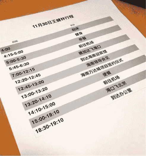 2016年12月,网络上流传一张王健林的行程表。这位62岁的中国首富,早上4点起床健身,然后飞行6000公里,出现在两个国家、三个城市,最终,晚上7点赶回办公室,继续加班。