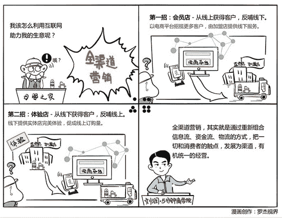 全渠道营销,就是通过重新组合信息流、资金流、物流的方式,把一切和消费者的触点,发展为渠道,有机统一的经营。今天介绍了两种线上与线下结合的全渠道营销方式:会员店和体验店。会员店,是从线上获得客户,反哺线下;体验店是从线下获得客户,反哺线上。